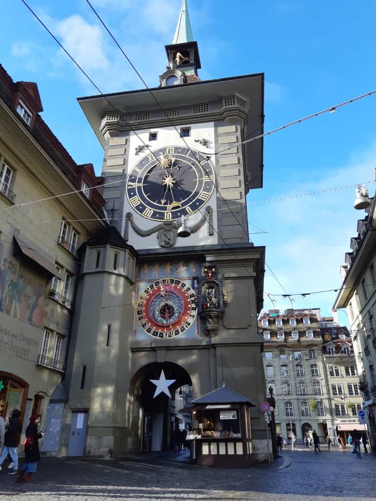 Nous avons fait un premier arrêt à Berne, la capitale suisse. Nous nous sommes concentrés sur la visite de la vieille ville, le centre historique qui est entouré de plein d’arcades marchandes. Nous avons pu observer la tour de l’horloge : Zytglogge. Les poids sont remontés chaque jour à la main et le carillon sonne 3 minutes avant chaque heure pleine.