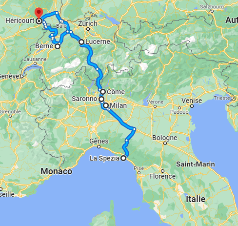 L’idée de ce road trip de 5 jours était de découvrir les 5 terres, Cinque Terre. Mais, c’était donc aussi l’occasion de découvrir l’Italie du Nord que nous ne connaissions pas du tout. Nous sommes partis de Franche-Comté avec notre voiture.