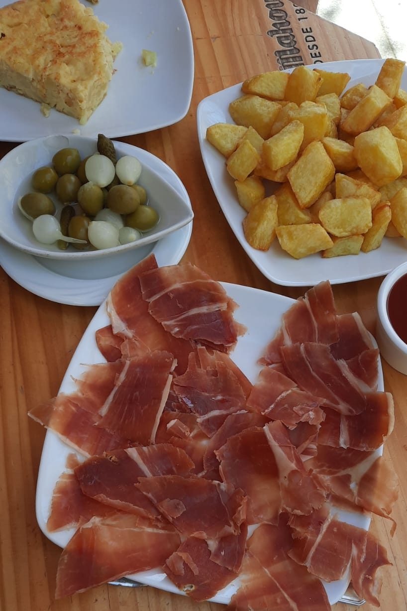 Avant de retourner à l’aéroport, nous nous sommes arrêtés au hasard dans un resto pour manger une dernière fois tortilla, jàmon et patatas bravas ! Ensuite, nous sommes repassés par l’hôtel pour récupérer nos bagages et nous avons pris le métro direction l’aéroport.