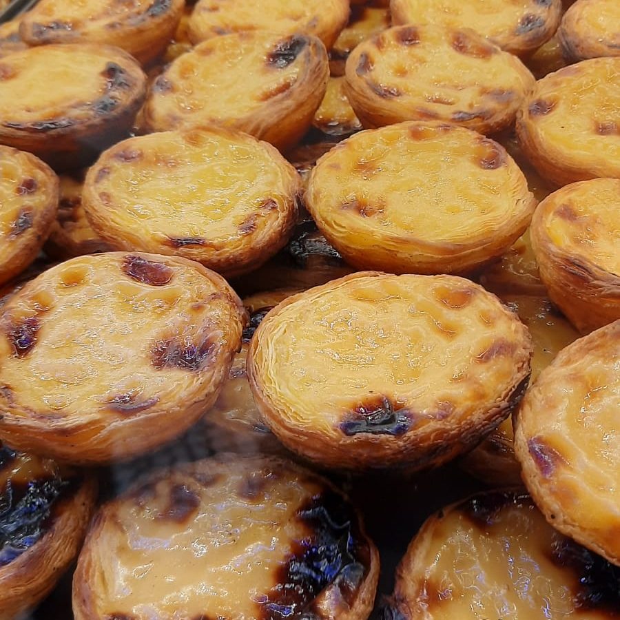 Comme nous n’avions pas l’option petit déjeuner à l’hôtel, nous sommes directement allés au petit café juste en bas. Il proposait des espressos à 0,80€ et des pasteis de nata, LA spécialité locale – qui sont finalement ni plus ni moins que des tartes au flan !