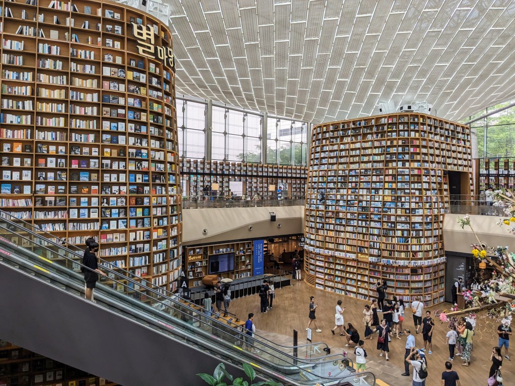 Le quartier de Gangnam est l’endroit parfait pour faire du shopping car il y a beaucoup de mall dont le Starfield COEX Mall, l’un des plus grand centre commerciaux de Séoul. C’est ici que se trouve la Starfield Library. C’est la bibliothèque qu’on voit partout sur instagram ! Elle est assez impressionante car il y a des murs de livres du sol au plafond et le plafond en verre rend l’endroit très lumineux.