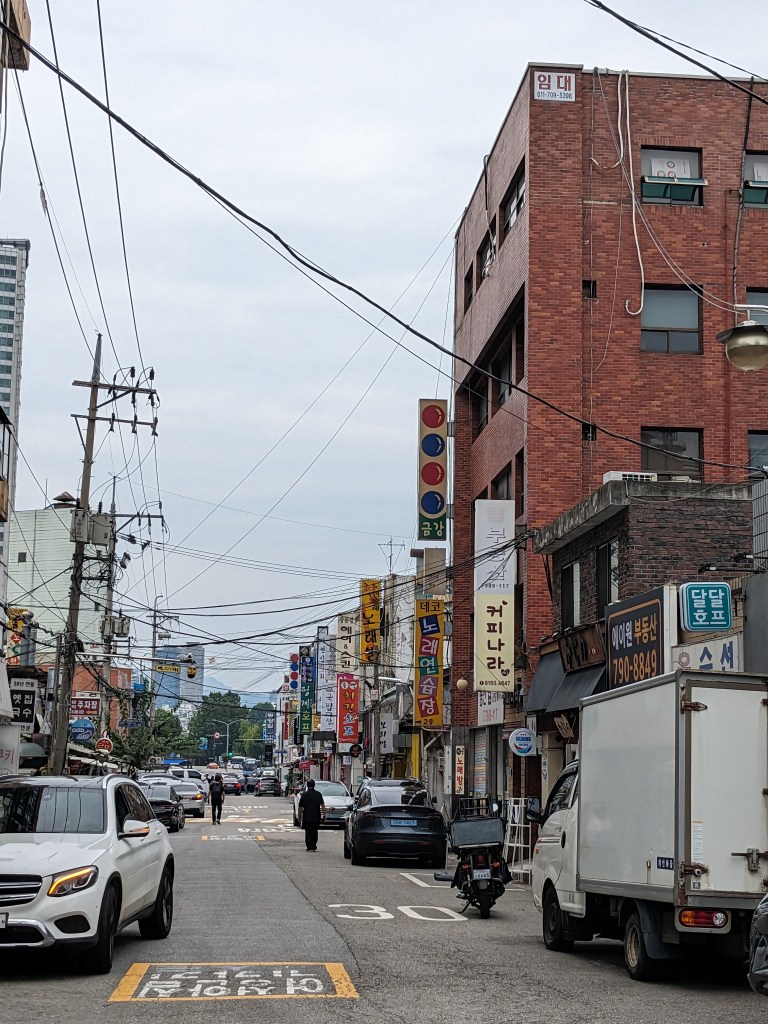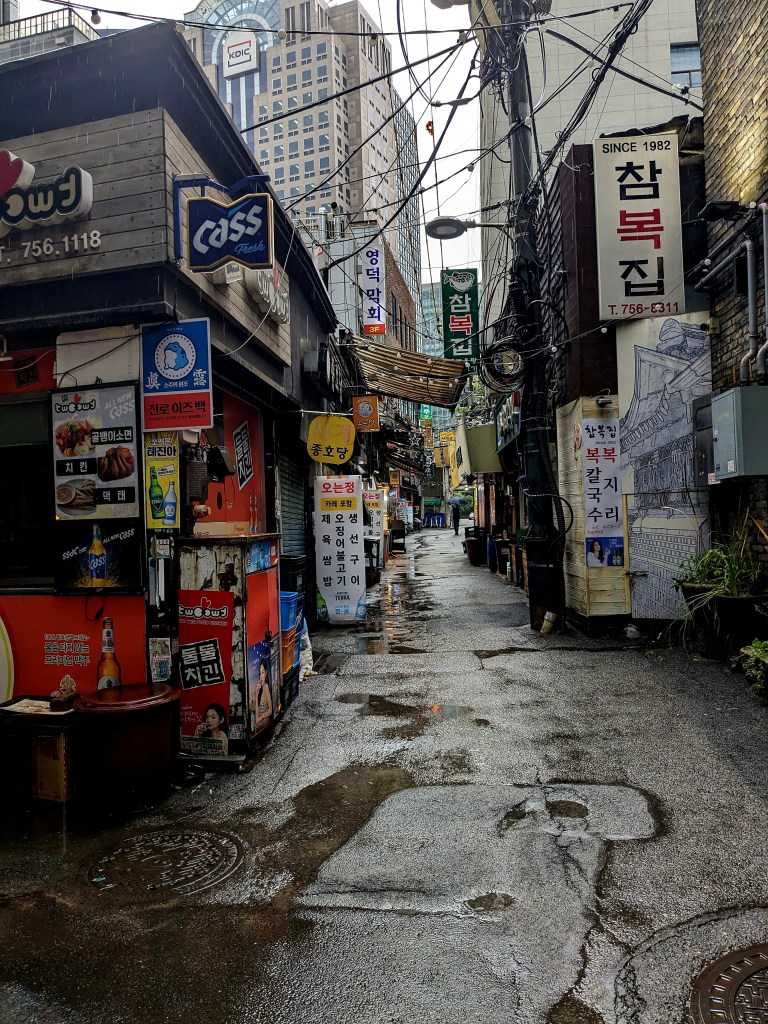 Pour ce 4ème jour à Séoul, nous avons rejoint le quartier de Gangnam en métro. Le trajet est un peu long mais les métros sont climatisés et rarement bondés. Gangnam est situé au sud du fleuve Han qui traverse la ville, c’est un quartier riche et moderne.
