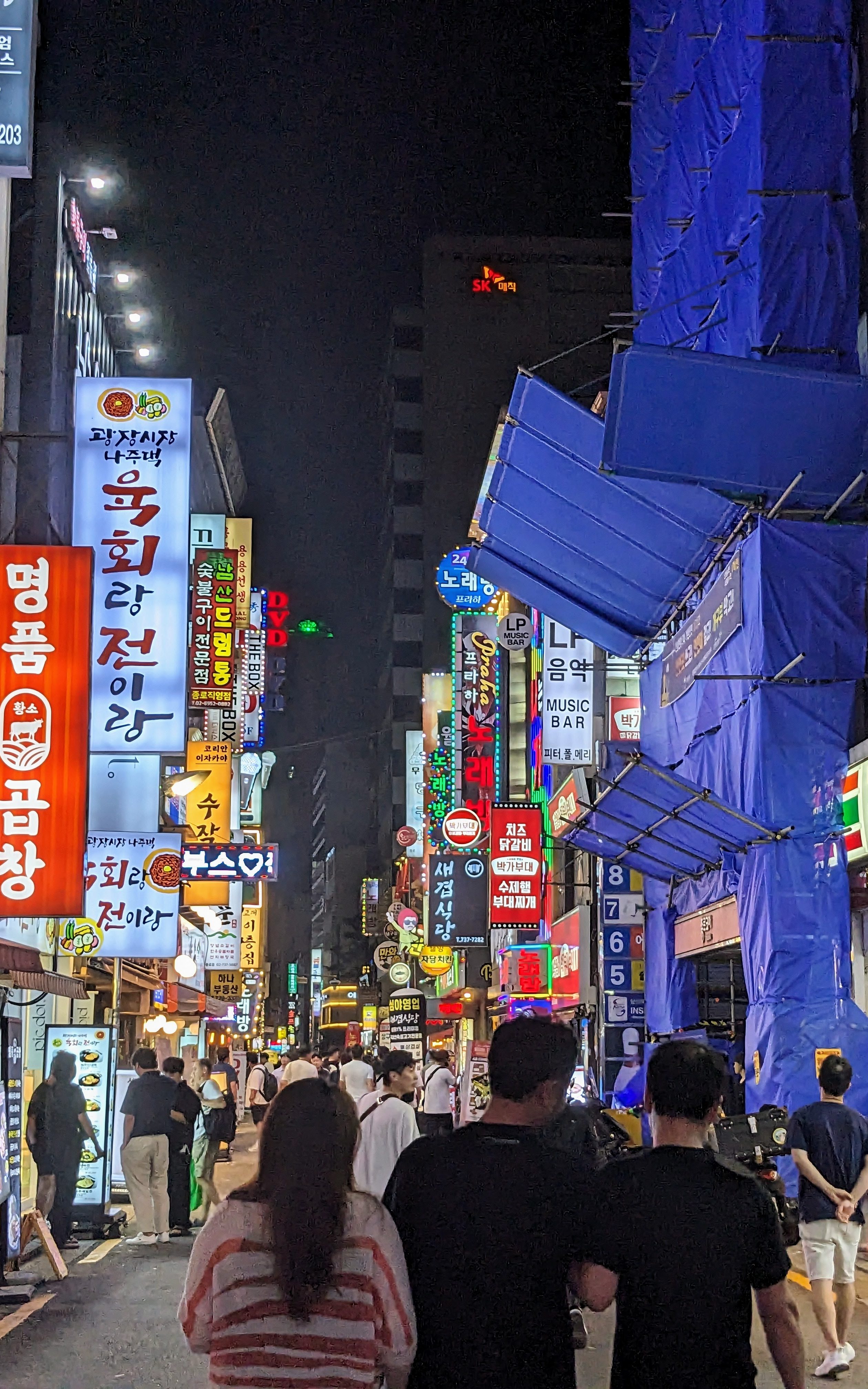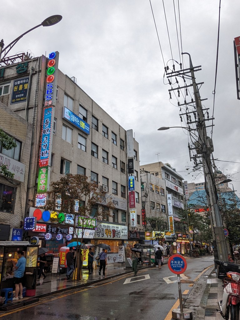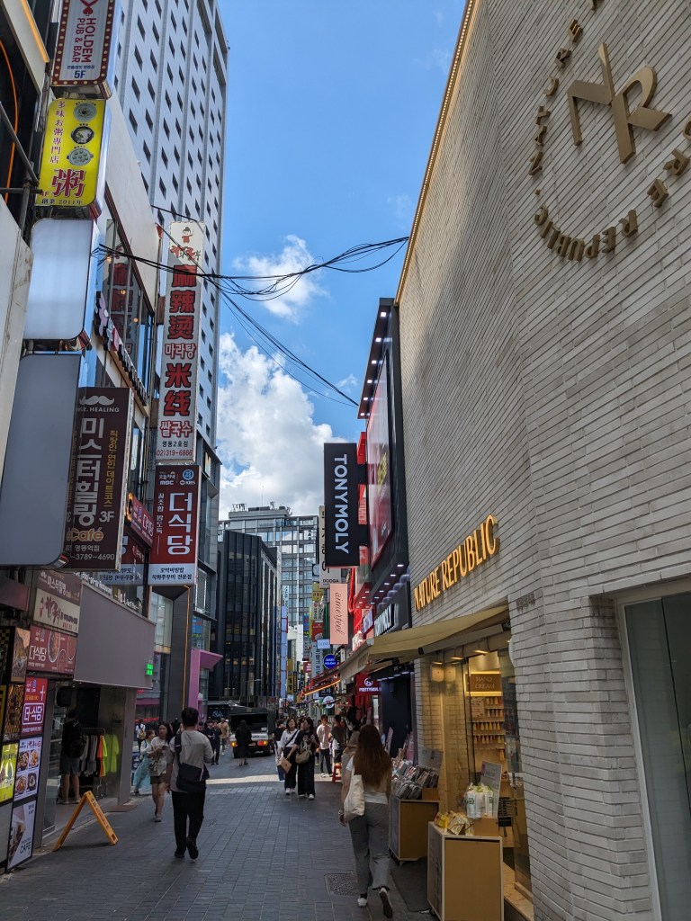 Pour terminer la journée, nous nous sommes baladés dans le quartier de Myeongdong, où se situait notre hôtel. C’est un quartier très animé et, c’est très sympa en fin de journée car il y a beaucoup de magasins et et les rues sont très animées ! Il y a aussi de nombreux restaurants.