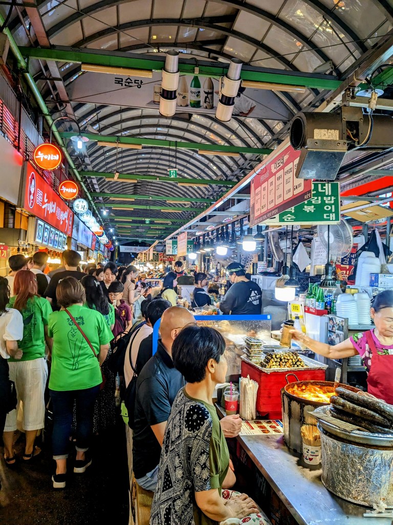 Nous avons terminé la journée au Namdaemun Market, le plus grand marché traditionnel de Séoul. C’est l’occasion de goûter un plat traditionnel coréen dans une ambiance toute particlière et animée !