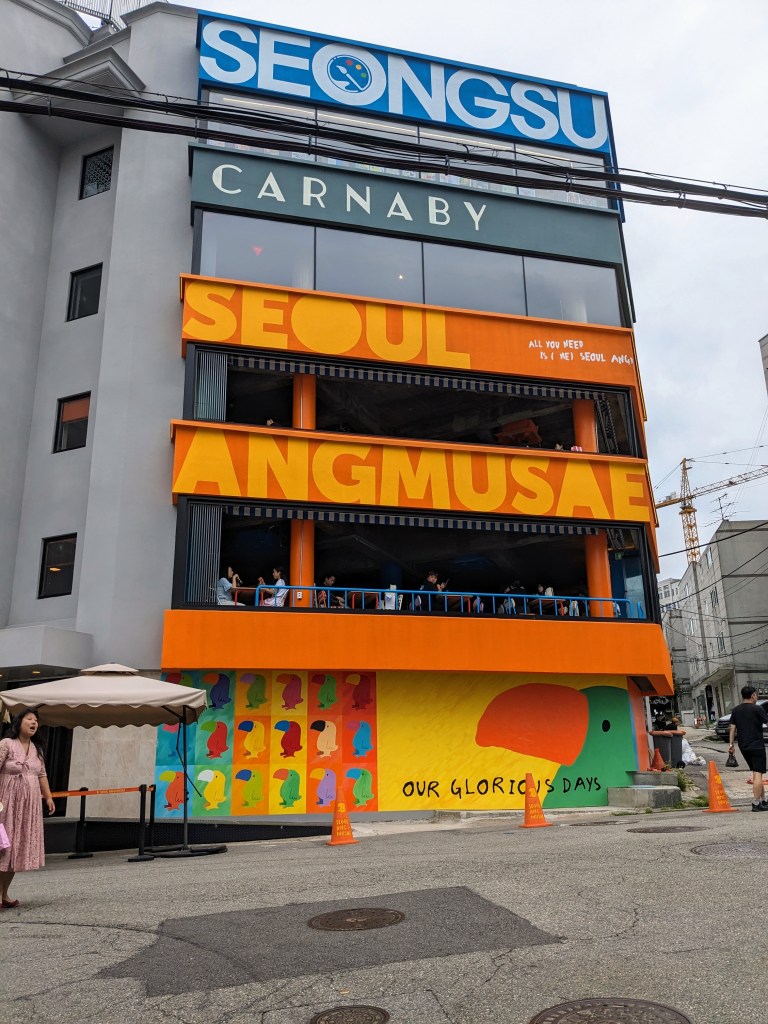 Pour cette dernière journée à Séoul, nous avons changé de quartier et nous sommes rendu en métro à Seongsu-dong (성수동). Nous avons mangé à Seoul Angmusae, un endroit hyper cool, que nous avons adoré.