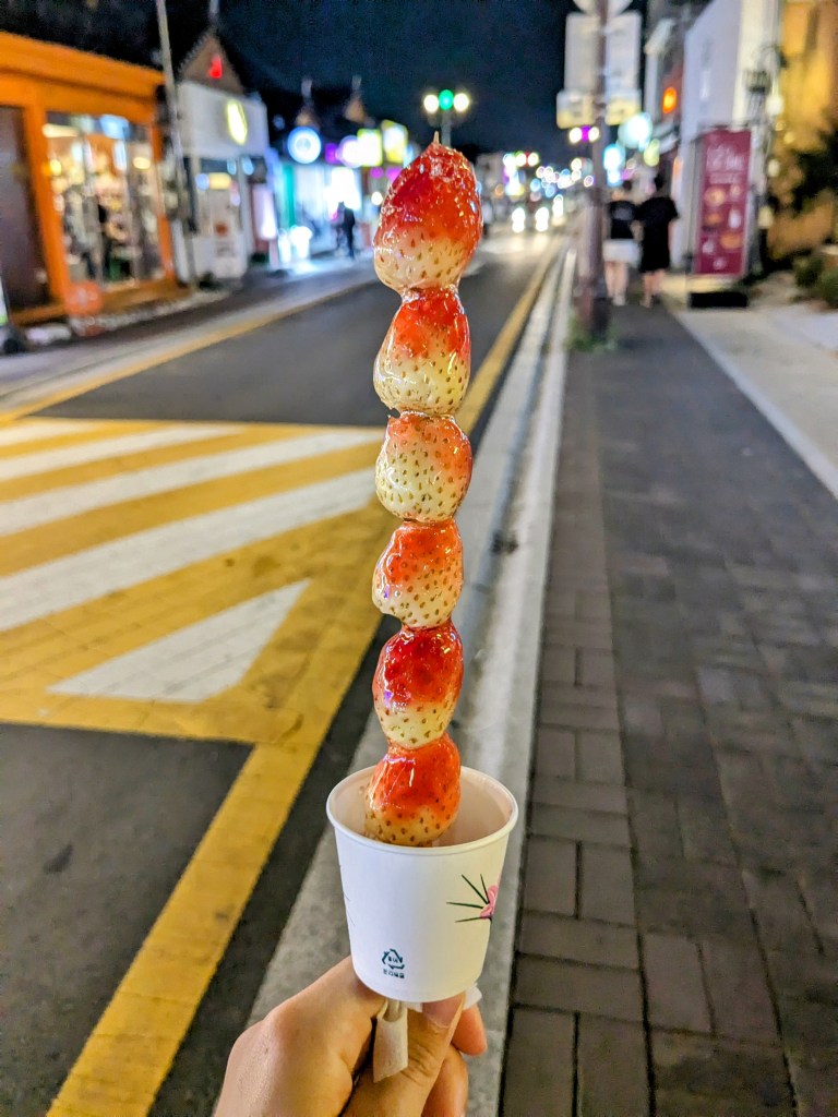 Nous nous sommes ensuite dirigés vers les principales rues commerçantes de Gyeongju. L’ambiance est très sympa et m’a un peu fait pensé à Biarritz, mi-chic, mi-détente. J’ai adoré entrer dans les petites boutiques du quartier !
