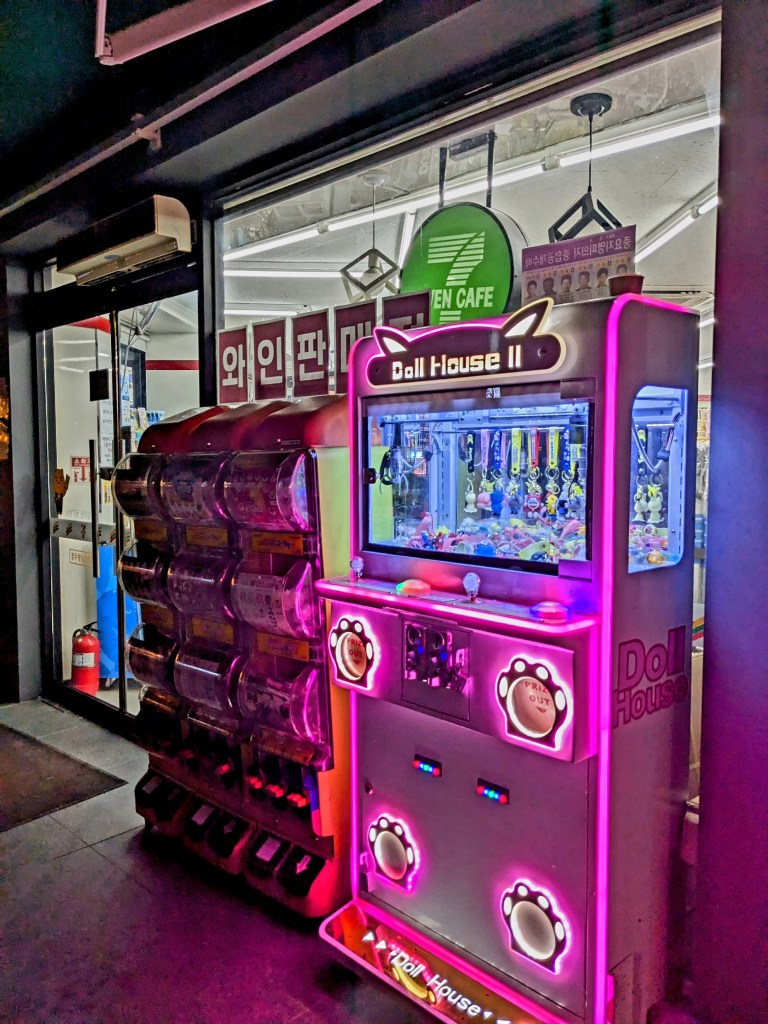 Nous avons rejoint la ville en métro. Des cartes de métro sont disponibles juste avant d’entrer dans la station de l’aéroport avec des bornes de mais, on ne peut recharger ces cartes qu’avec du liquide ! Et c’est comme ça partout, même dans Séoul. Lorsqu’il faut recharger une carte de métro, c’est toujours avec du liquide. L’aéroport est assez loin du centre de Séoul : le trajet dure environ 1h30.
