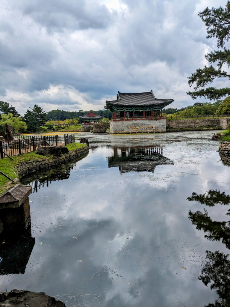 Avant de partir de Gyeongju, nous souhaitions visiter Donggung Palace. L’entrée coûte 3000krw. Encore une fois, il ressemble beaucoup aux palais déjà visités à Séoul car il a lui aussi une architecture coréenne traditionnelle. Ce qui fait sa spécificité, c’est l’étang où l’on peut se promener, ce qui rend l’atmosphère très calme et paisible. Je pense que l’idéal est de le visiter de nuit car il est très bien éclairé. Nous avons ensuite déjeuné dans un restaurant japonais de la rue commerçante.