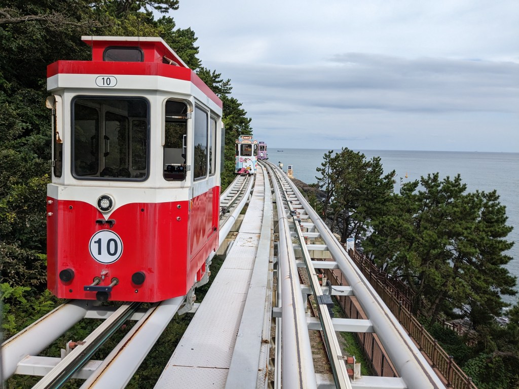 Près de la plage, se trouve la « station » de départ pour monter dans les sky capsule : Haeunde Blueline Park – Mipo Station. L’attraction coûte assez chère (environ 15€/pers) mais le trajet est assez long et nous avons beaucoup aimé. La vue sur la côte est très jolie.