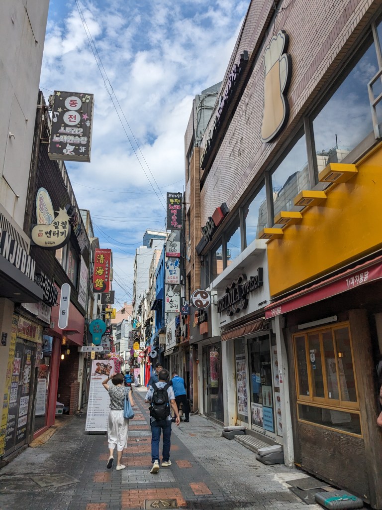 Après avoir fait le tour des principales attractions touristiques de Busan, nous avons profité de notre dernière journée sur place pour faire un peu de shopping dans les quartiers dynamiques et populaires de la ville. Nous nous sommes baladés à Gwanbok fashion street, l’une des principale rue commerçante de Busan.