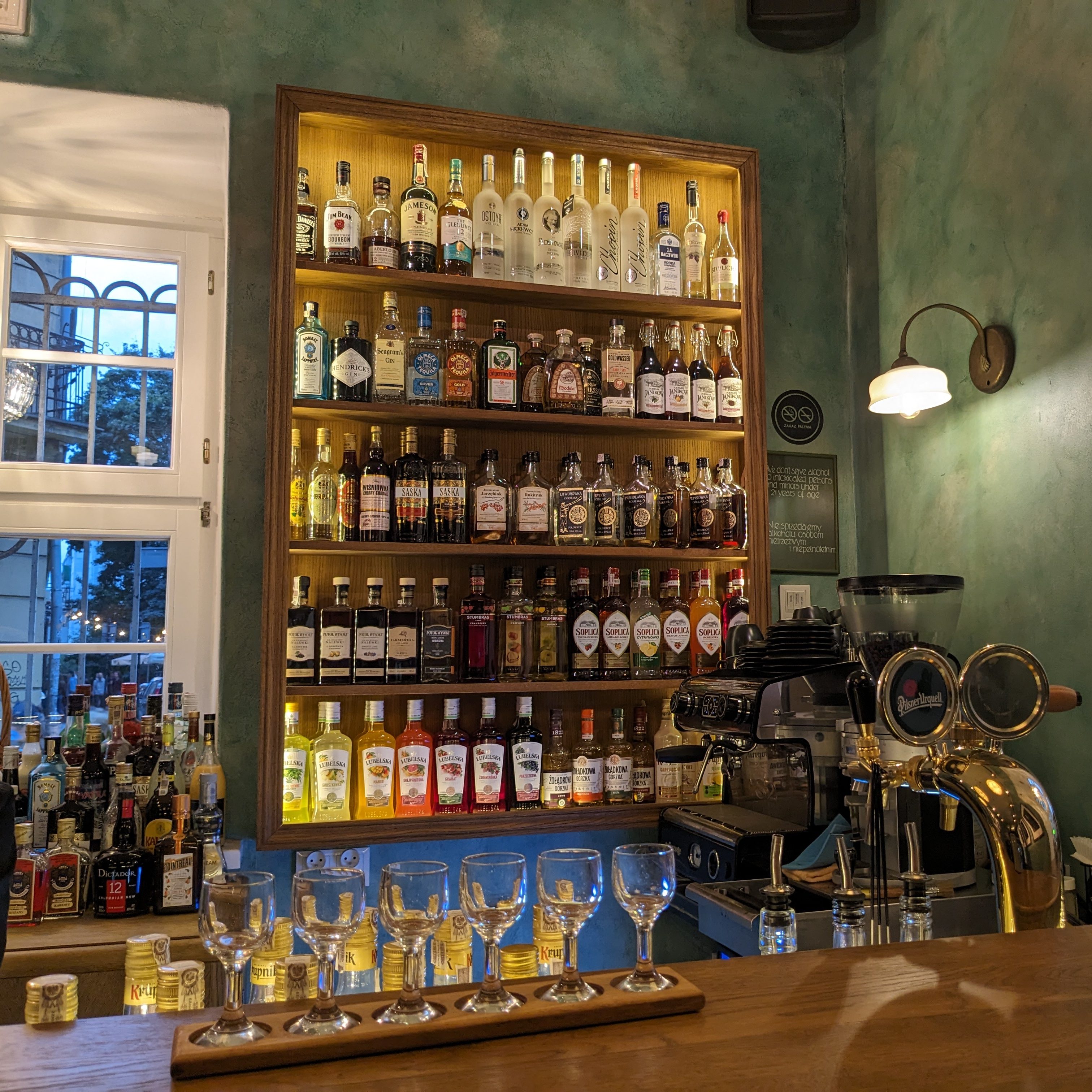 Nous sommes passés par le passage Schindler, une ancienne usine d’émaillage et de fabrication de produits métalliques qui appartenait à Oskar Schindler. Aujourd’hui, l’usine abrite un musée et, il y a plusieurs bars à l’entrée du passage. Nous nous sommes arrêtés dans un bar à Vodka. Le concept est très sympa : pour 10€, on peut goûter 6 shots de vodka aromatisés. Il y a des dizaines et des dizaines de goûts différents !