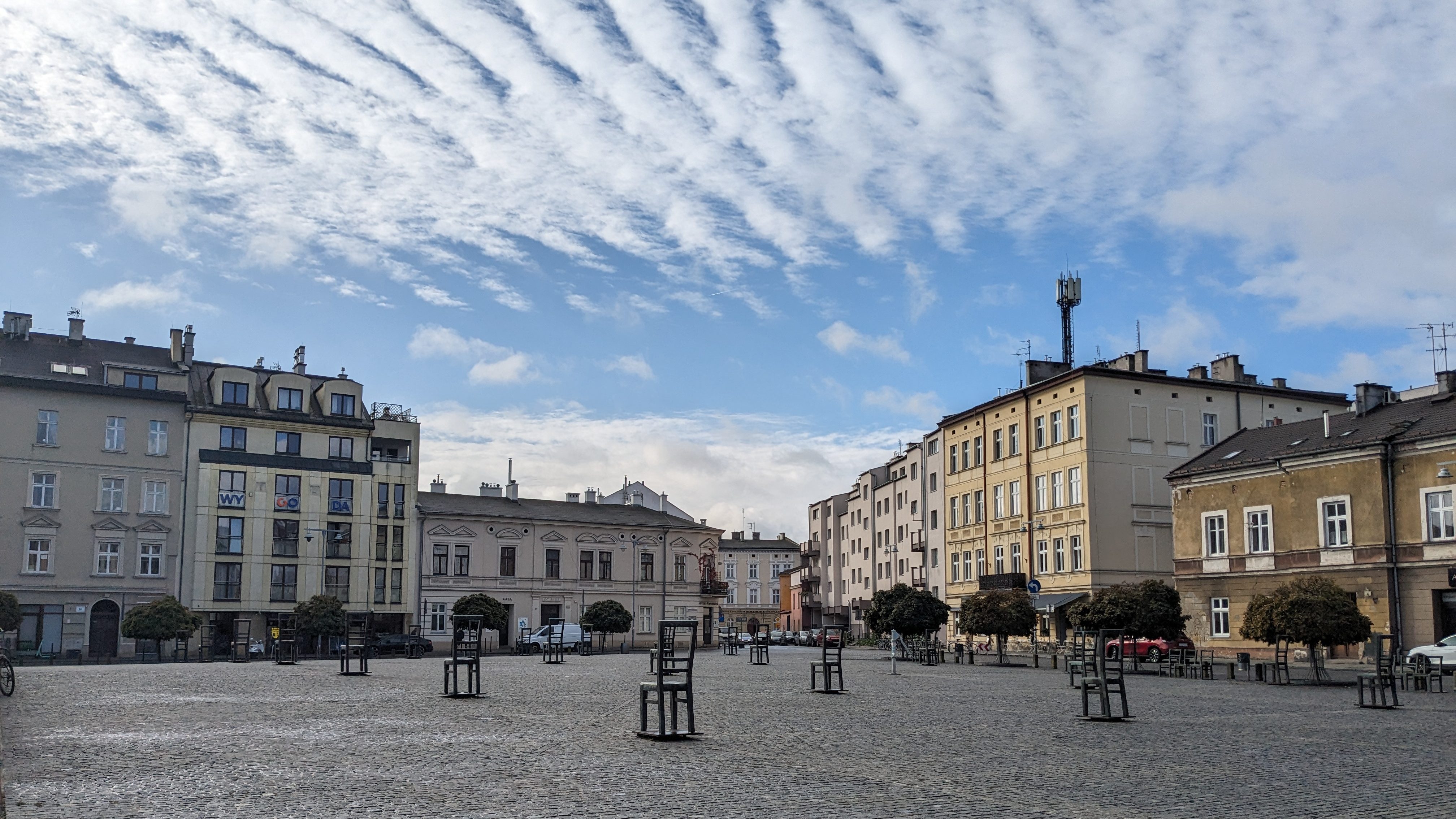 Nous avons poursuivi la journée en nous baladant dans le quartier de Podgorze. Il se situe de l’autre côté de la Vistule, le fleuve qui traverse Cracovie.