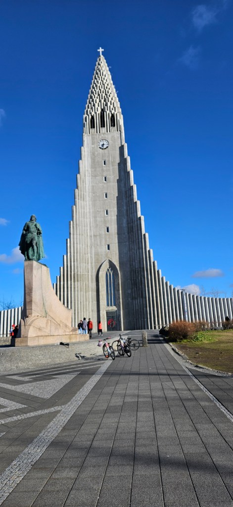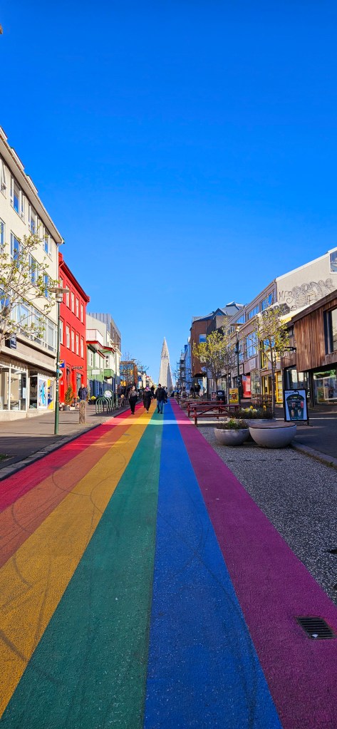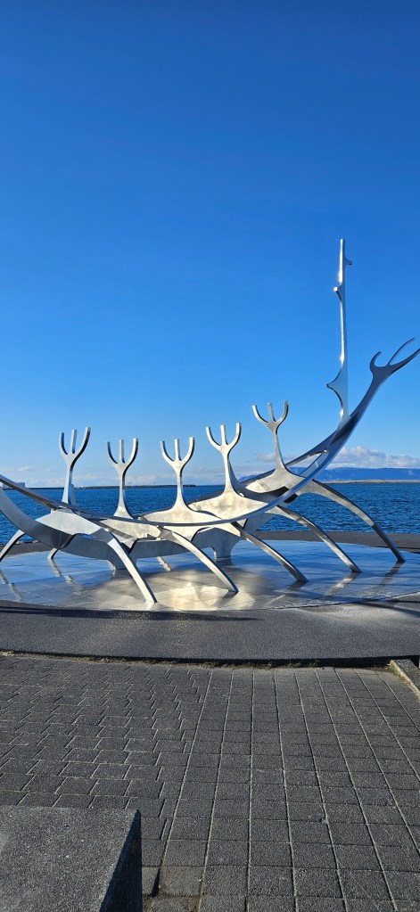 On s’est baladé dans la rue principale et on a remonté la Rainbow Road jusqu’à l’église Hallgrimskirkja. On a continué notre balade le long de la marina pour voir la statue du voyageur du soleil, Sólfar.