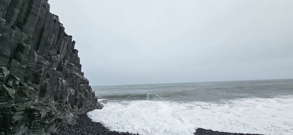 On a fait un tour sur la plage Reynisfjara, le parking est payant. Malheureusement il faisait super moche et il y avait énormément de vent, du coup on n’a pas vraiment profité de l’endroit.