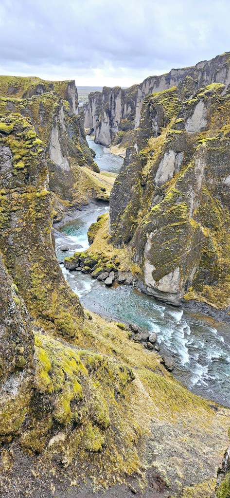 C’est la première journée du road trip où nous avons beaucoup roulé. Nous avons fait un premier stop au canyon Fjaðrárgljúfu. Le parking est payant. Il y a environ 30min de marche AR pour aller jusqu’aux différents points de vue. J’ai beaucoup aimé ce stop car c’était assez différent de ce que nous avions vu jusqu’ici.