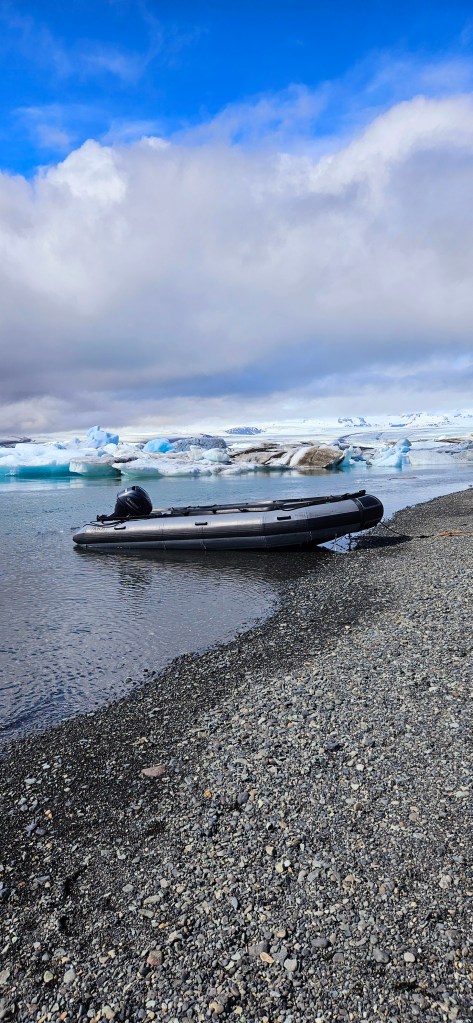 Notre deuxième arrêt de la journée était au lagon Jökulsarlon. Le parking côute 7€ et permet d’accéder également au parking juste en face pour Diamond Beach. Plusieurs activités sont proposées pour explorer le glacier de plus près mais nous sommes simplement restés à l’observer depuis la terre ferme. Le paysage est magnifique et on a même pu voir un phoque !