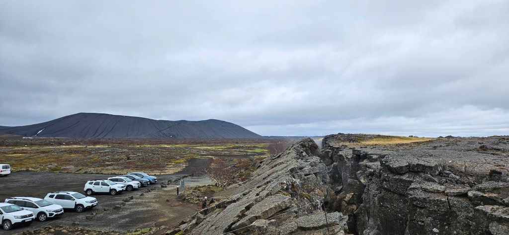 Nous nous sommes arrêtés pour voir la grotte Grjótagjá. Le parking est gratuit. Dans la grotte il y a une source d’eau chaude géothermique. Grjótagjá était utilisée comme un bain thermal naturel, mais des éruptions volcaniques dans les années 1970 ont augmenté la température de l’eau, la rendant trop chaude pour s’y baigner. La grotte est aussi connue car elle a servie comme lieu de tournage pour Game of Thrones.
