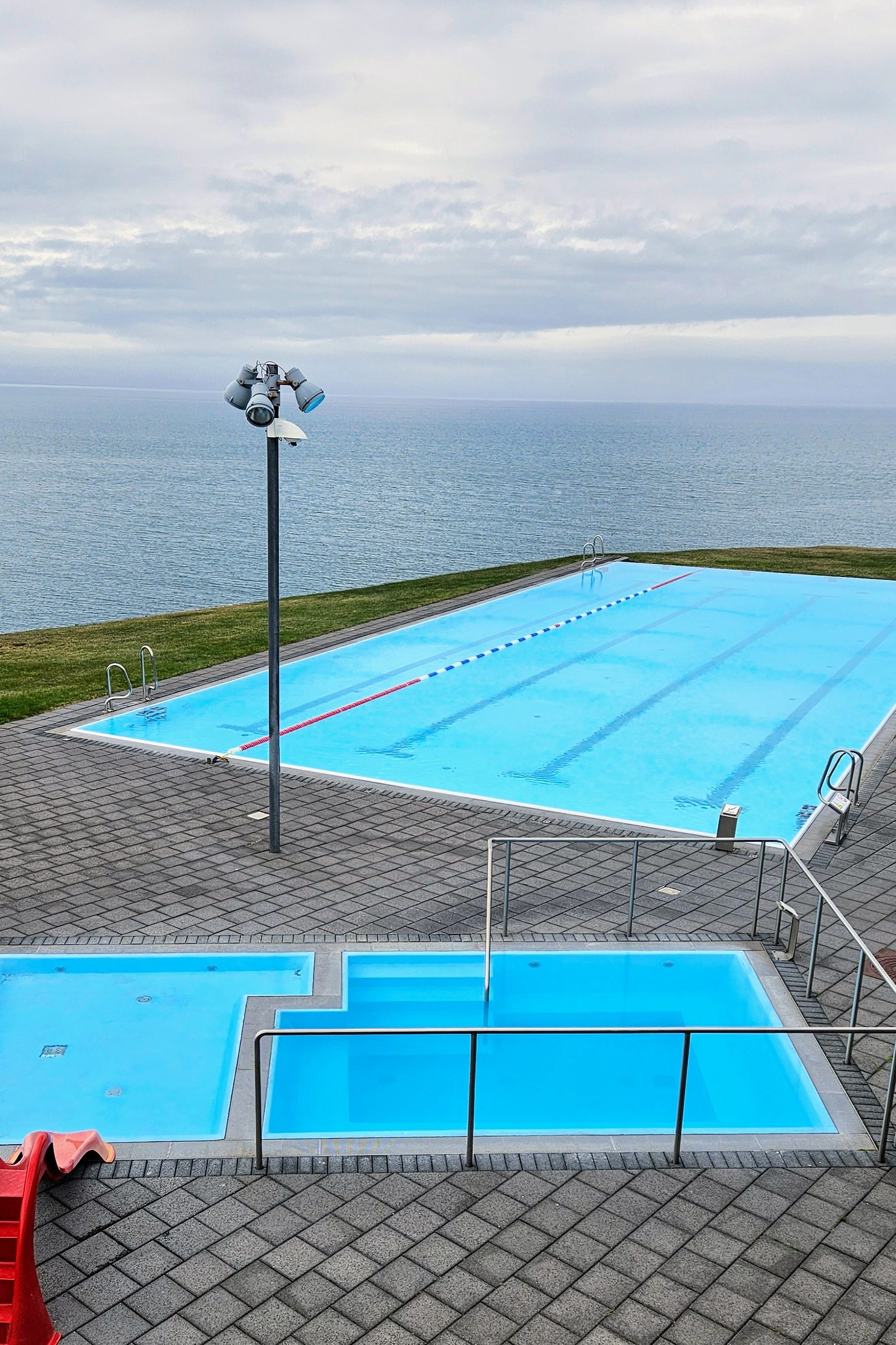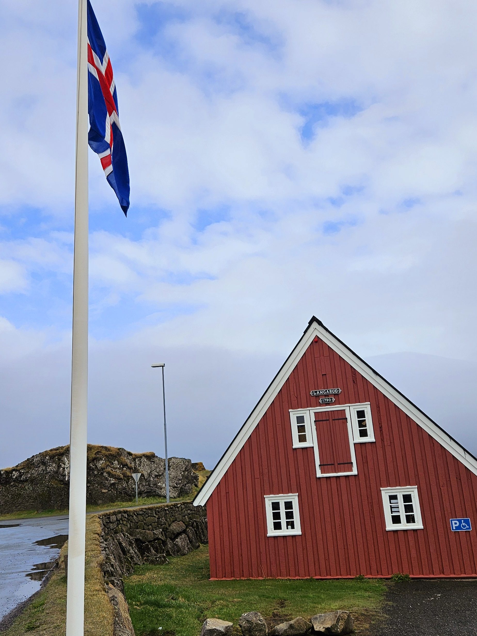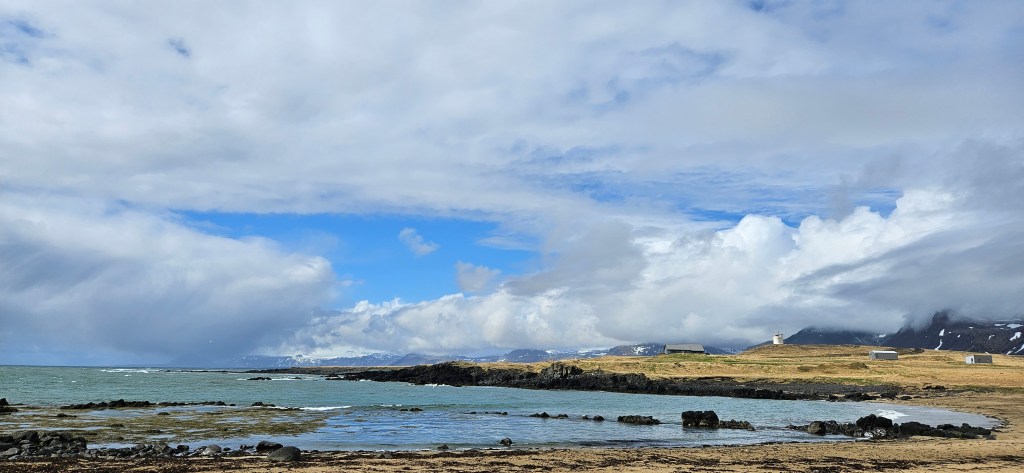 Nous souhaitions faire un arrêt dans ce village car il est « connu » pour sa piscine géothermale, qui offre une vue imprenable sur le fjord. Conçue par les architectes Basalt, elle est souvent considérée comme l’une des piscines les plus belles et les plus uniques d’Islande. Malheureusement, lorsque nous sommes arrivés vers 14h, la piscine était fermée et ne rouvrait qu’à 17h. Nous sommes donc repartis sans nous baigner !