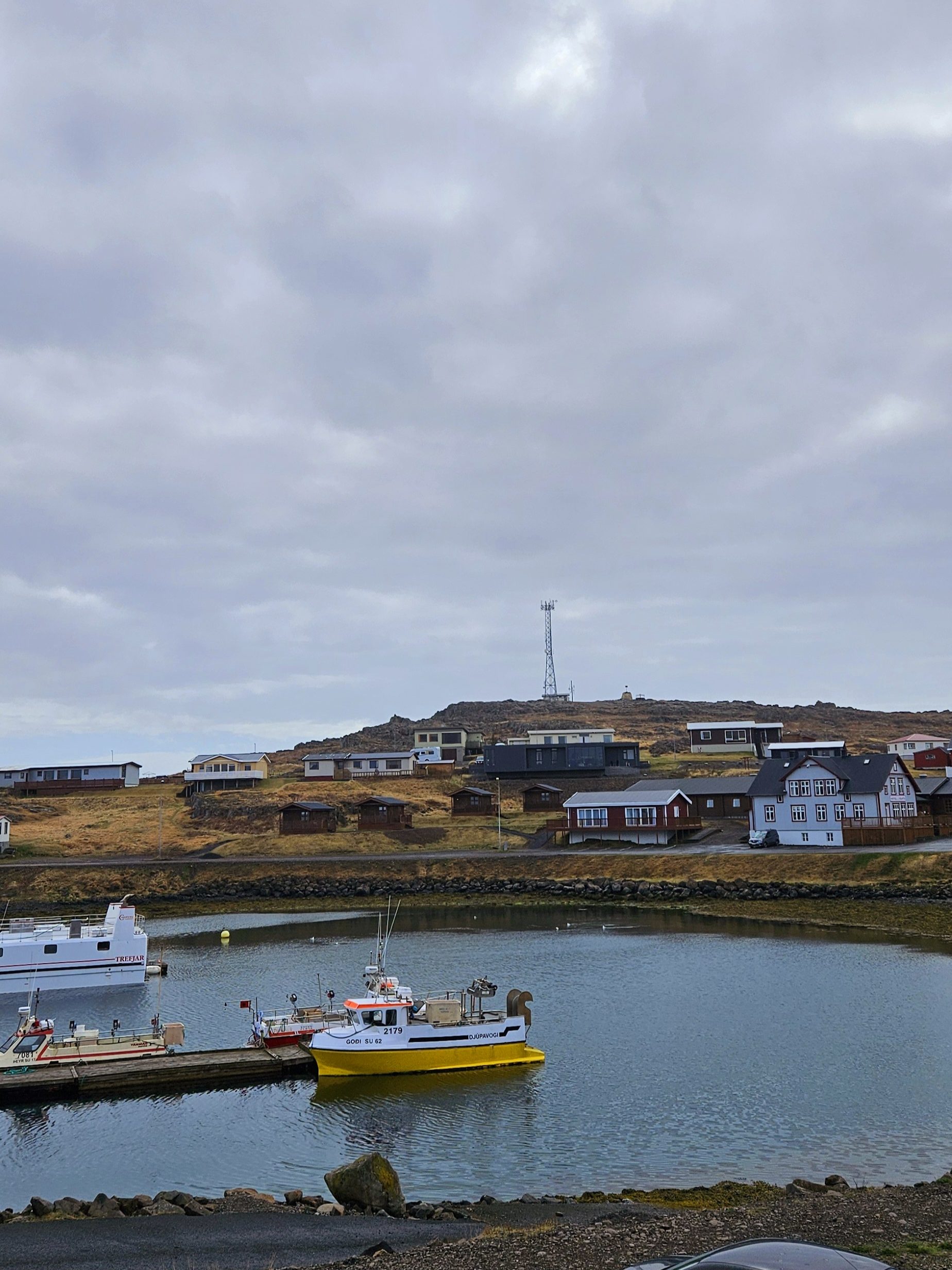 Nous avons fait un premier stop dans la matinée à Djúpivogur pour prendre un café. Comme nous étions dimanche, nous n’en avons trouvé qu’un ouvert mais il y a plusieurs petits magasins. Djúpivogur est un tout petit village et il n’y a pas grand-chose à y faire à part faire une pause-café.