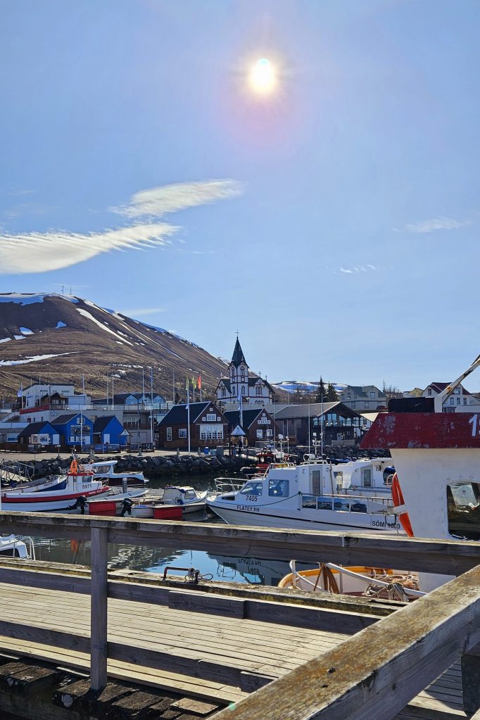 Après la sortie en bateau, nous avons mangé dans un restaurant du centre de d’Húsavík et nous avons passé l’après-midi dans le village pour nous reposer. C’était une bonne idée d’avoir réserver 2 nuits dans le même hôtel en milieu de séjour car ça nous a permis de faire une petite pause dans la conduite. Húsavík est un village très mignon avec toutes les commodités.