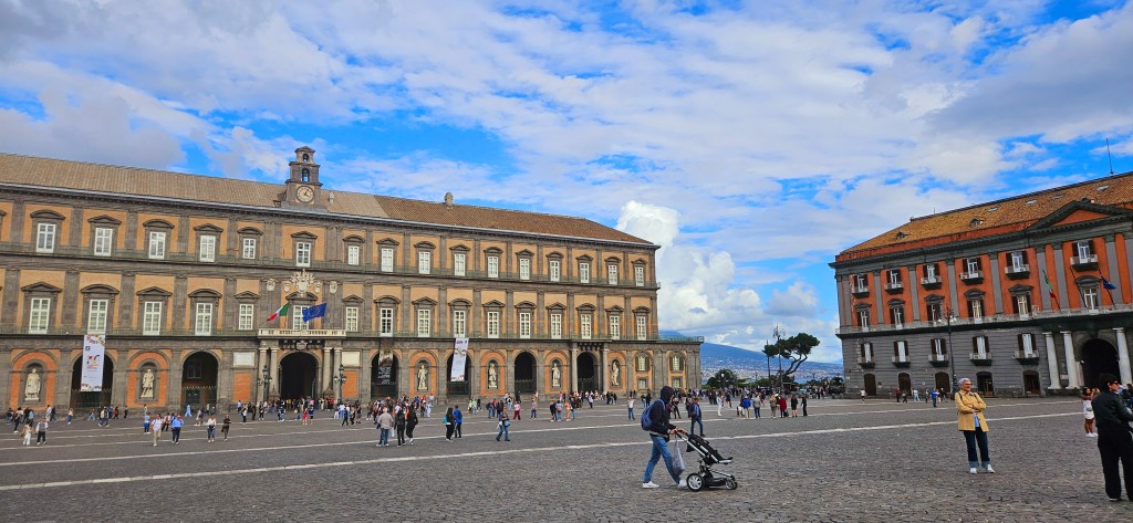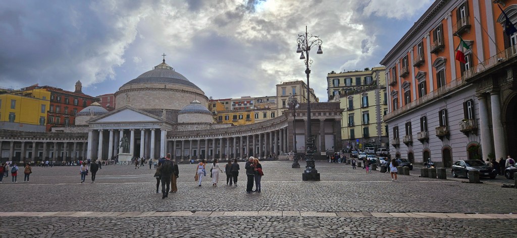 On est rentré dans la Basilique San Francesco di Paola et, il y a aussi le Palais Royal, le Palazzo Salerno et le Palazzo della Prefettura.
