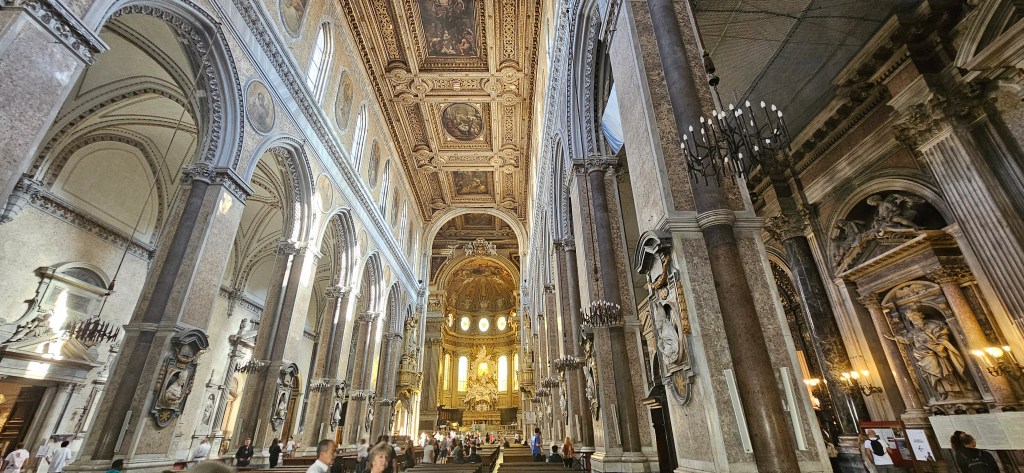 On en a profité pour visiter le Duomo, une cathédrale dédiée à la vierge Marie et à l’intérieur de laquelle sont conservées les reliques du saint patron de Naples : San Gennaro.