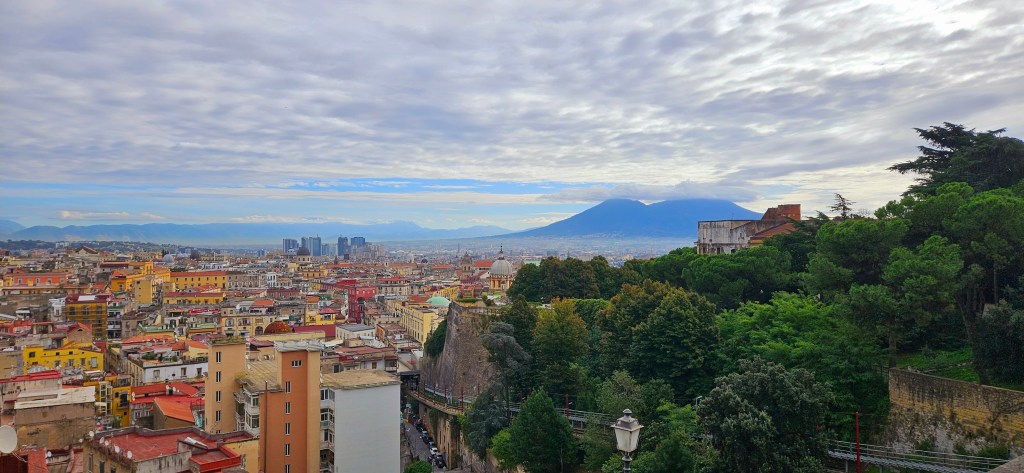 On s’est rendu sur la colline de Vomero directement avec le métro. Le quartier est dans les hauteurs de Naples ce qui permet d’avoir une jolie vue sur la ville en contre-bas, le Vésuve et la mer. C’est un quartier assez résidentiel mais très mignon.