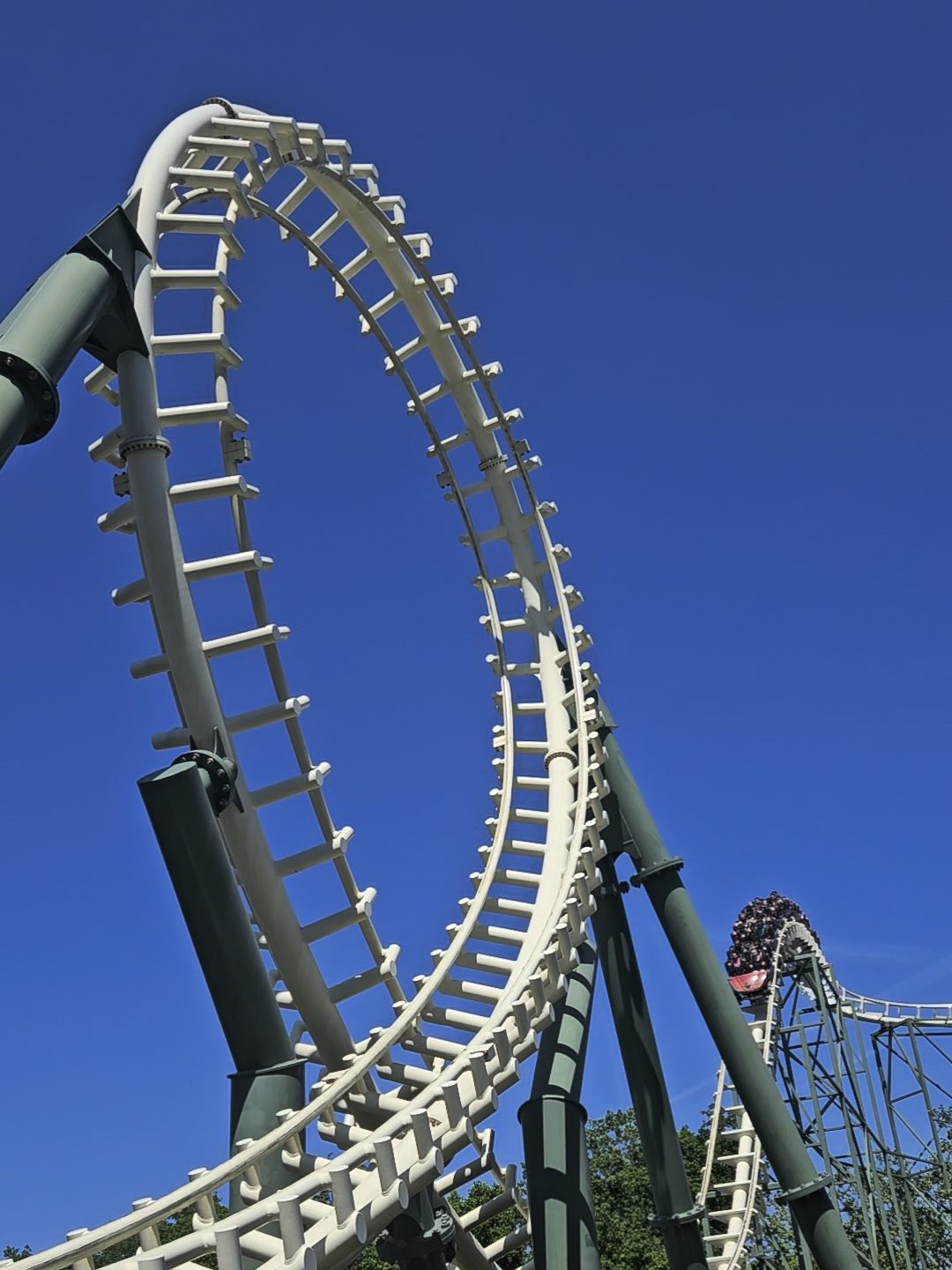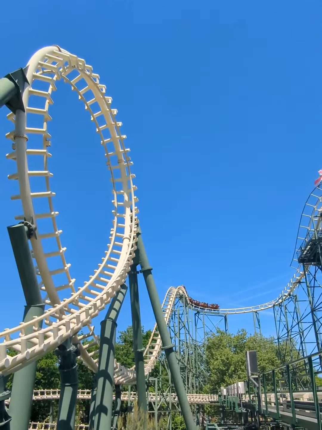 C’est la montagne russe la plus impressionnante du parc avec une chute verticale très pentue. Ce qui ajoute aussi aux sensations, c’est le fait qu’après la montée, l’attraction se stoppe dans le vide quelques secondes. On est littéralement suspendus au-dessus d’un gouffre.