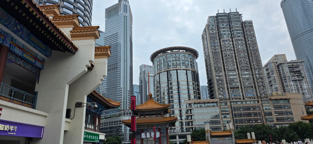 C’est la rue commerçante principale de Chongqing, un peu le « time square » local même si c’est beaucoup moins impressionnant.